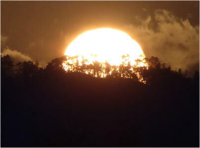 太陽が山並みに沈もうとしています。ぬくもりが無くなり寒さが増して